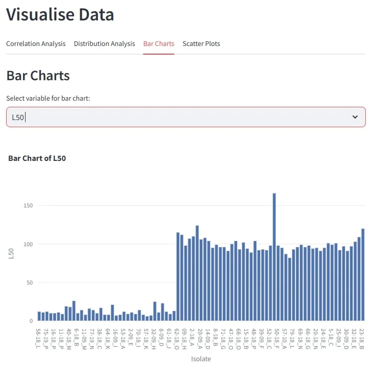 Want to compare values across samples or categories? The bar chart option lets you visualise any column interactively.
