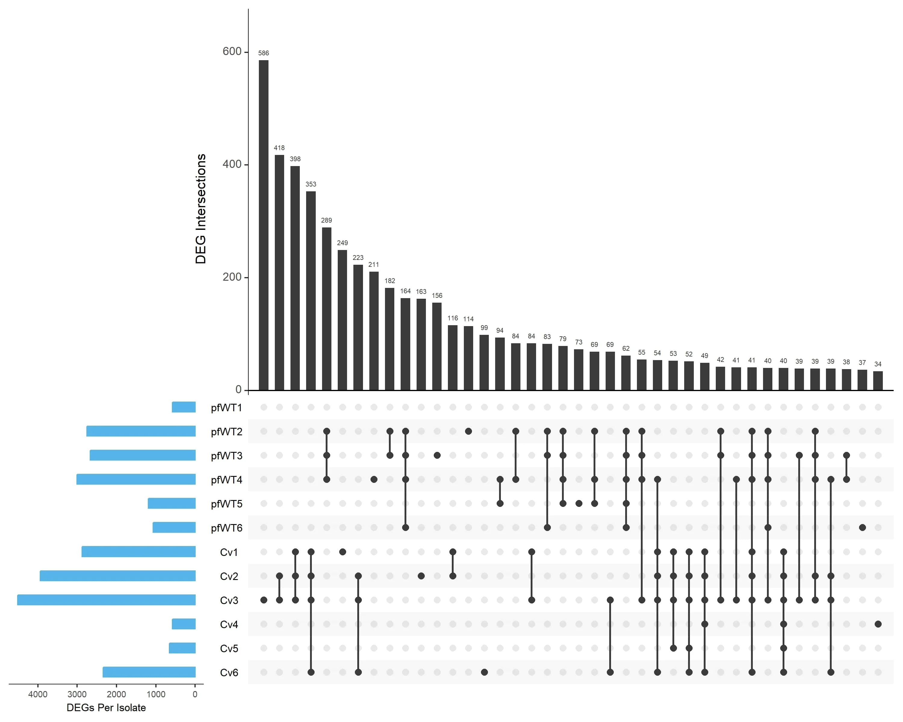 mainbar.y.label = "DEG Intersections", sets.x.label = "DEGs Per Isolate",